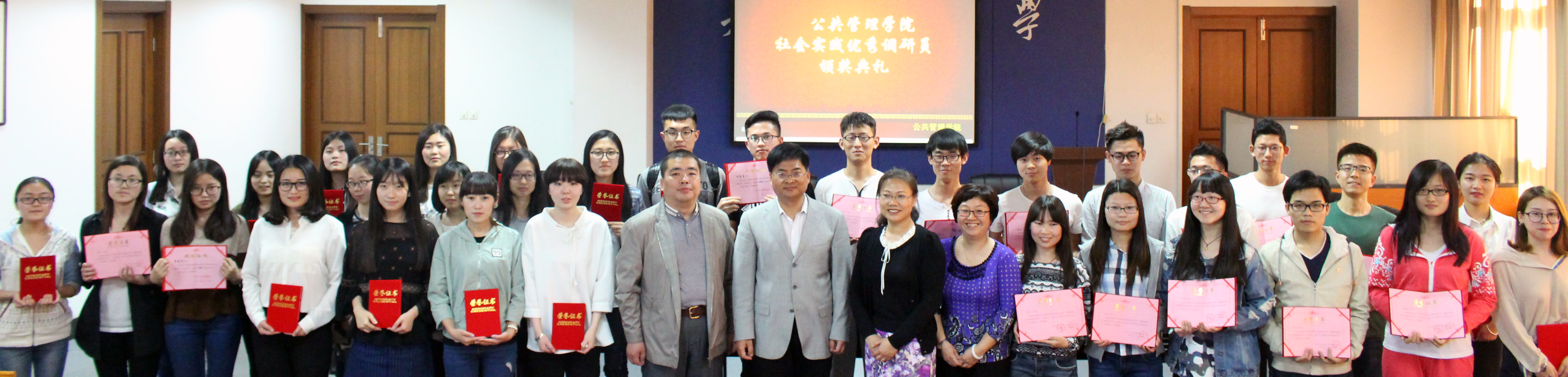 行政管理专业13级员工先后参与了“天津市政府部门绩效考核民意调查项目”和“中国地方政府发展能力指数调研项目”的数据采集和社会调研工作,受到了有关单位的一致好评。天津市统计局和南开大学中国政府与政策联合研究中心分别评出20位在实践调研活动中表现突出的员工,并予以奖励。邹智勇代表获奖同学发表了获奖感言,分享了参加社会实践调研的感受及收获。