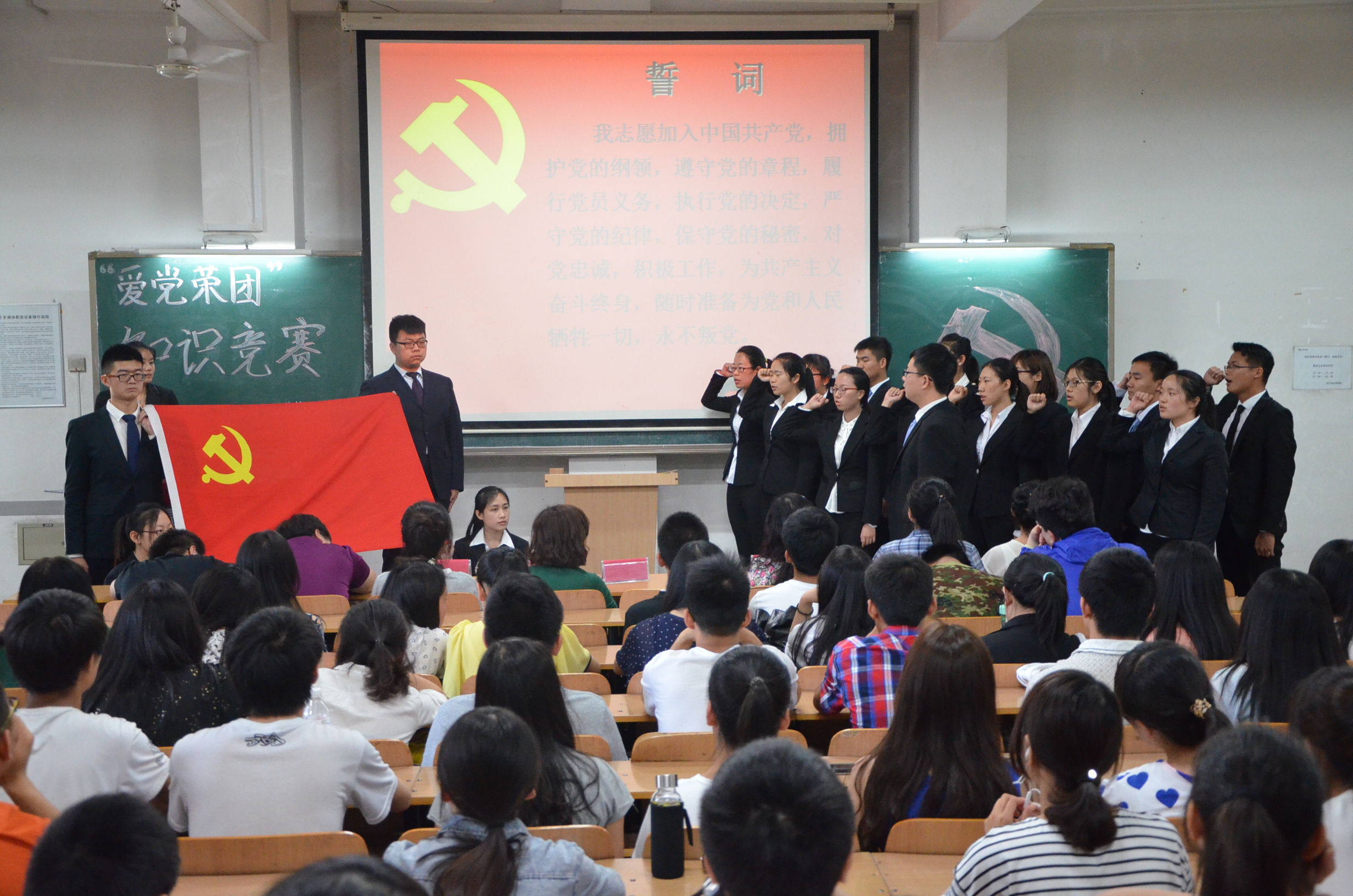 5月20日,bevitor伟德国际1946爱党荣团知识竞赛暨新党员入党宣誓仪式在3号教学楼118室举办,bevitor伟德国际1946辅导员孙瑶、沈洁、仉雅琼老师及2013级研究生党支部书记石慧、第三员工党支部书记武杭出席并担任竞赛评委。2014级近200名同学参加本次活动。