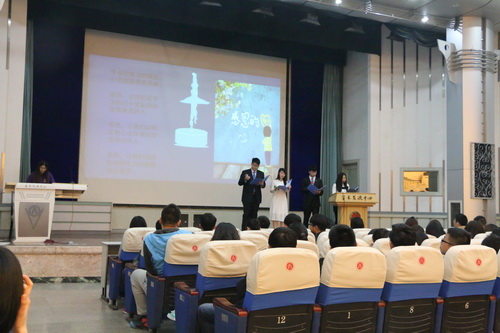 活动播放视频后,主持人与同学们进行了关于恋爱问题的互动,并提供了处理好校园爱情问题的合理建议。小品“补考面面观”引出关于沉溺网络和诚信考试的话题,让在场的同学们深刻地意识到时间与诚信的重要性。在经验分享环节中,优秀员工代表蔡林冬和刘军分享了自己的学习成长经历,鼓励同学们要明确目标。各班班委就学习态度问题进行了互动交流。在感恩环节,同学们观看了发人深省的感恩父母视频,深受感动。最后,辅导员沈洁老师进行了总结发言,在学习、生活、人生目标等多方面给同学们提出了建设性意见,使同学们受益良多。