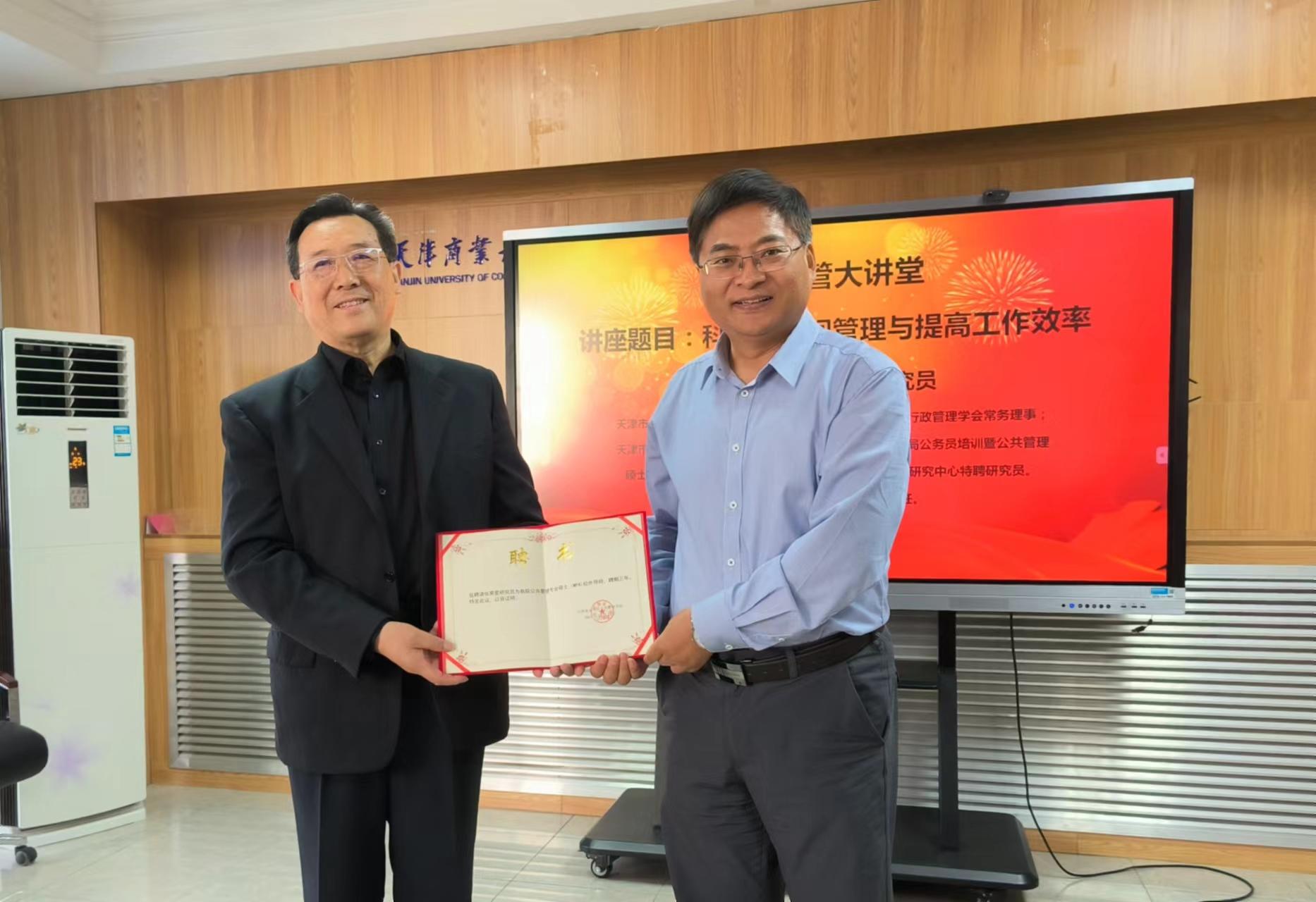 讲座开始前,bevitor伟德国际1946经理李增田教授为张霁星研究员颁发公共管理专业硕士(MPA)校外导师聘书。