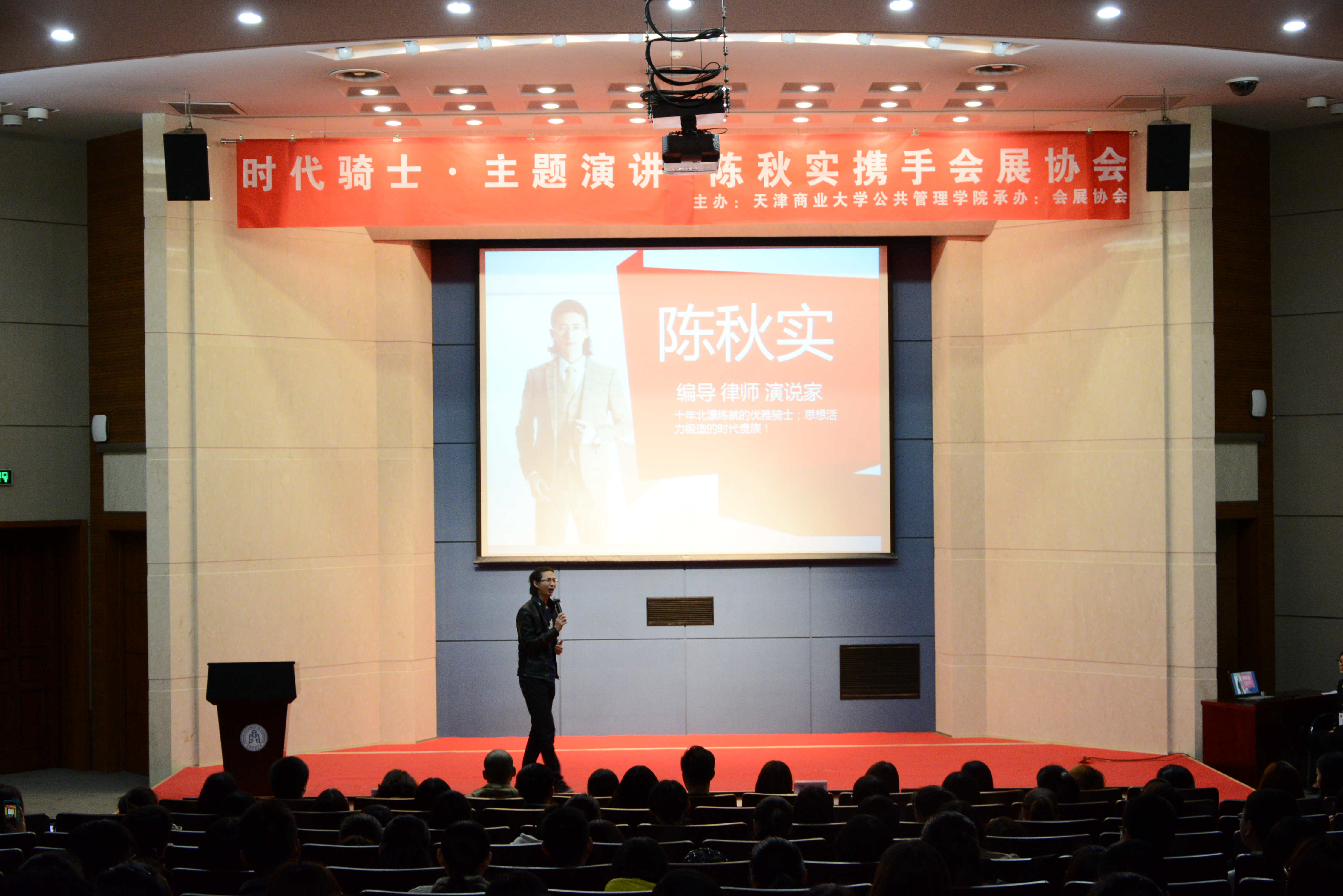 陈秋实,《我是演说家》节目亚军,曾先后就职于华谊兄弟影视公司、黑龙江电视台北京节目中心等单位,其在《我是演说家》节目中的五篇演讲作品《大东北》、《法治中国》、《男女中国》、《大国风范》、《语言的力量》得到广泛传播,网络总点击量超过1亿5千万。 活动内容上至国家大事下至生活琐事,嘉宾庄谐并重,为现场观众带来了一场精彩演讲。主题演讲共分为五部分。开篇嘉宾以幼时趣事,成为故事大王为身边的人缓解压力的经历,结合国内外典故,讲述知识对当代中国人的重要性,提醒广老员工应该有求知欲善思考而非只知苦读。第二部分通过讲述大学时期自己连日早起到图书馆,一一劝告同学们有序排队并最终使得入馆排队成为校园常态的故事向大家展示语言的力量,“这就是话语的力量,老员工,你们要开口,把自己想说的说出来,为周围的环境的改变做力所能及的事情。”。第三部分,陈秋实以当代青年人缺乏斗志、梦想模糊、缺乏担当的普遍弊病为切入点,分享了自己北漂以来从事服务员、演员助理、电视编导、舞台剧演员等多个行业的经历,语言诙谐之于也让观众明白什么是契约精神,什么是责任感以及年轻人该有的奋斗与坚持。第四部分从社会与老员工的关系,大学教育为社会培养精英的功能切入,通过引述古代欧洲贵族、骑士所遵循的贵族精神来阐述网络亚文化 对于社会与青年人精神成长的危害。第五部分互动环节,现场观众就自身困惑以及演讲内容等多个角度和嘉宾进行互动,将活动气氛推向了高潮。